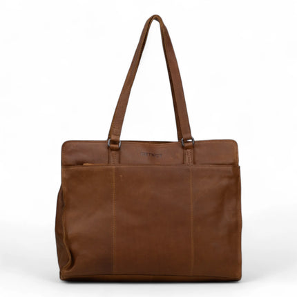 Maak kennis met de stijlvolle DSTRCT laptoptas uit de populaire Preston Park-lijn – een tas die perfect aansluit bij de behoeften van de moderne professional met oog voor mode. De tas is uitgevoerd in hoogwaardig generfd leer in een rijke cognackleur, en afgewerkt met donkerzilveren hardware voor een tijdloze, luxe uitstraling. Het subtiel ingedrukte DSTRCT-logo op de voorzijde voegt een elegante finishing touch toe.