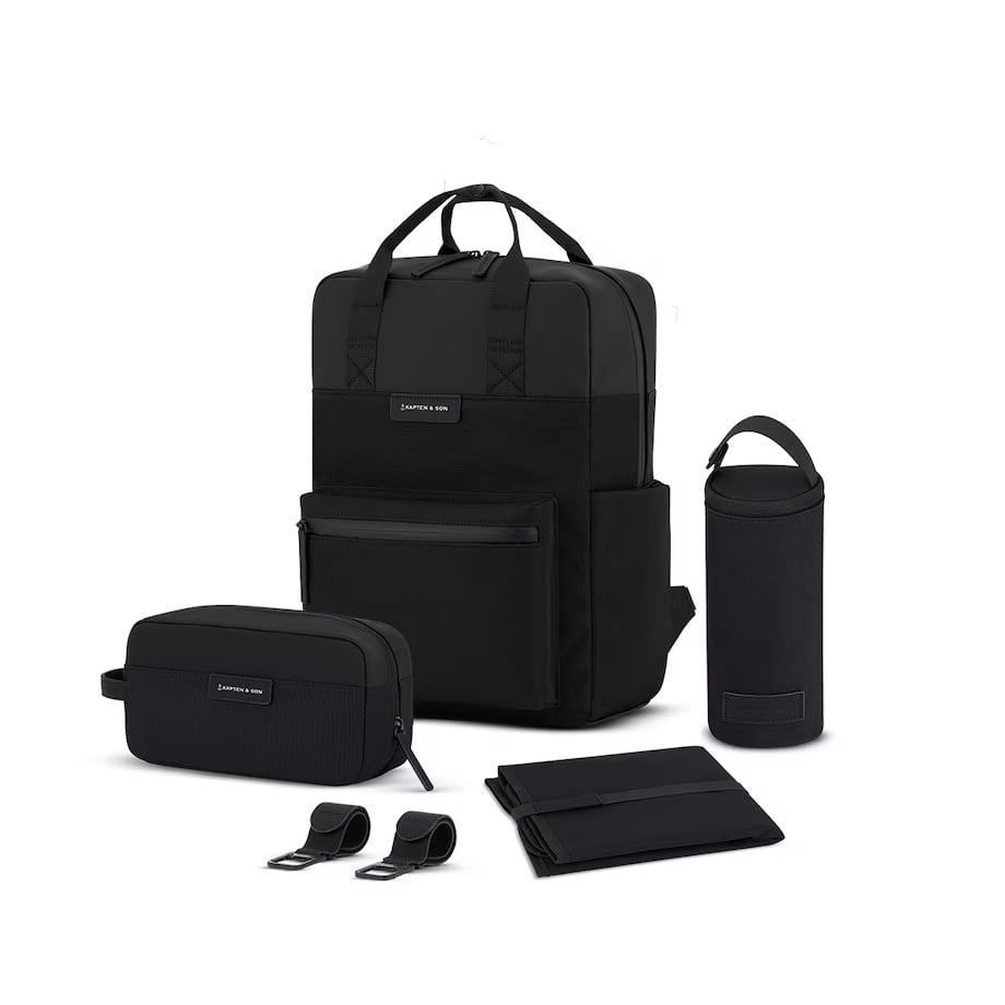 Kapten & Son heeft op basis van het populaire Bergen Pro-model een veelzijdige luierrugzak ontworpen, speciaal voor moderne ouders. Deze stijlvolle tas biedt ruimte aan een 15" laptop en beschikt over een extra tabletvak met zachte microfleece voering. Bij de rugzak worden bovendien een los luiermatje, een toilettas en een geïsoleerde flessentas meegeleverd.
